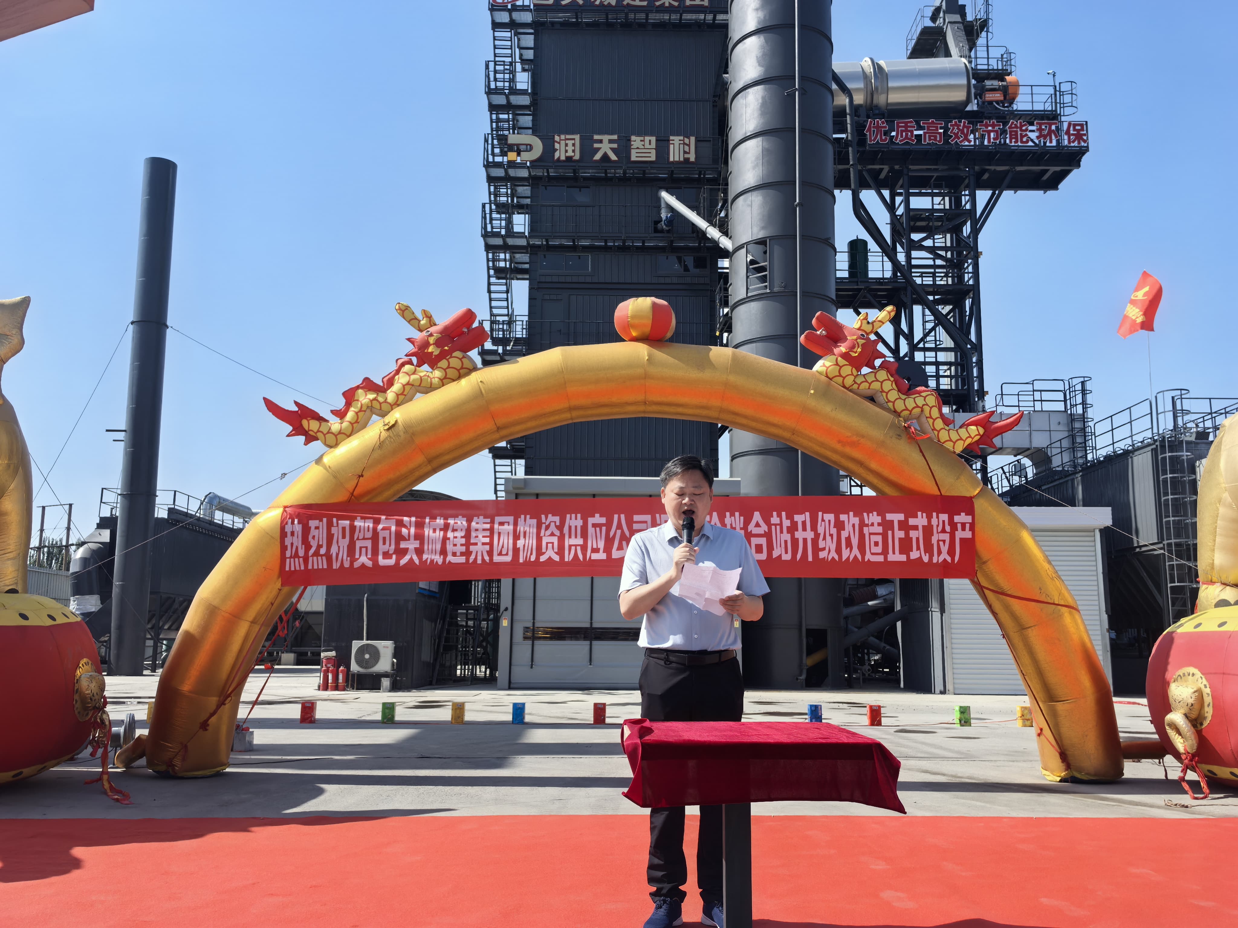 盛夏的包頭,彩旗招展。在包頭城建集團瀝青站項目盛大開業(yè)慶典現(xiàn)場,潤天智科董事長張裕先生親自率領核心團隊,與各界嘉賓共同見證了這一重要時刻,并參與了剪彩儀式。這不僅標志著潤天智科LBR系列一體式瀝青混合料攪拌設備在內蒙古******項目的成功投運,更揭開了雙方深度合作、共拓市場的嶄新序幕!