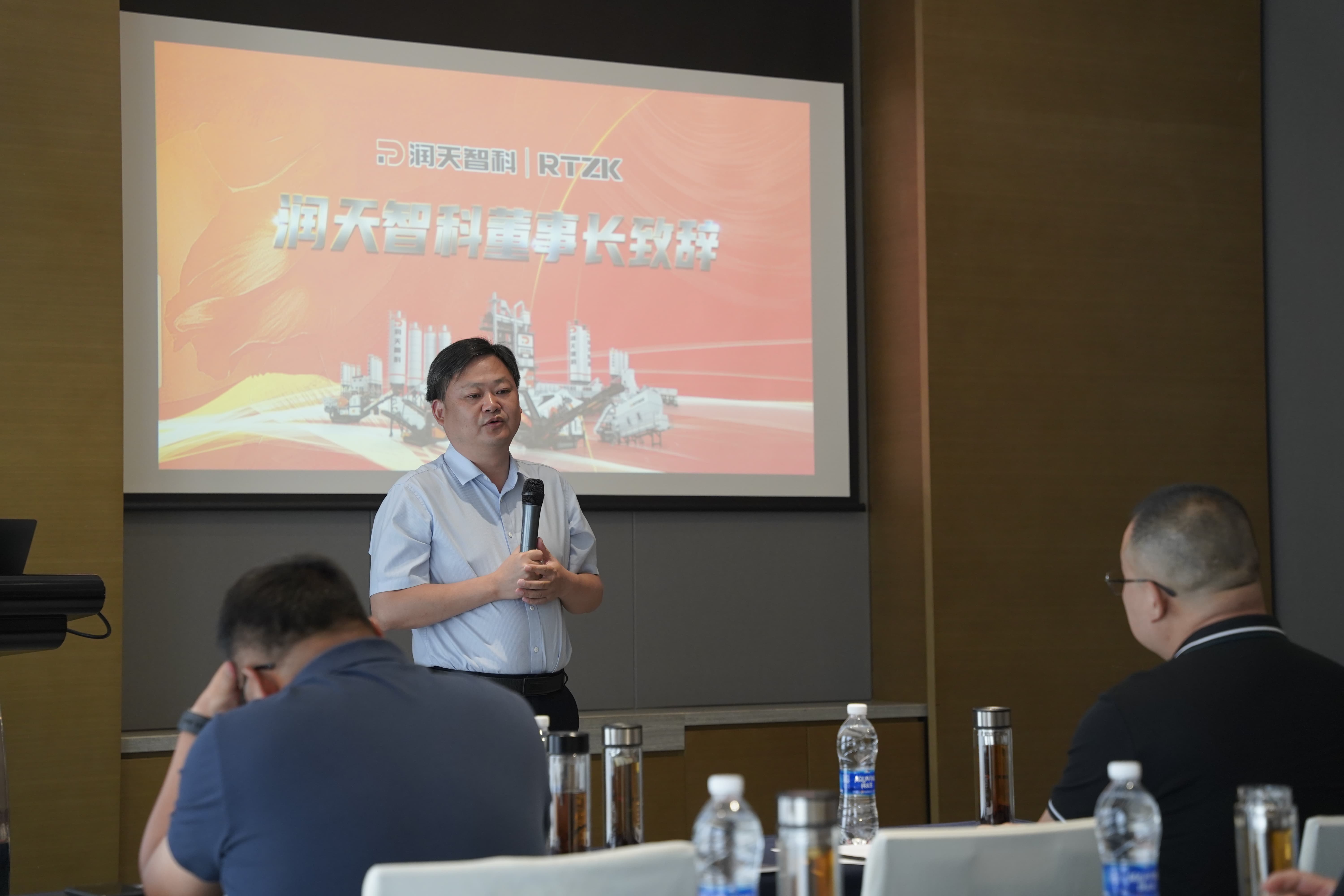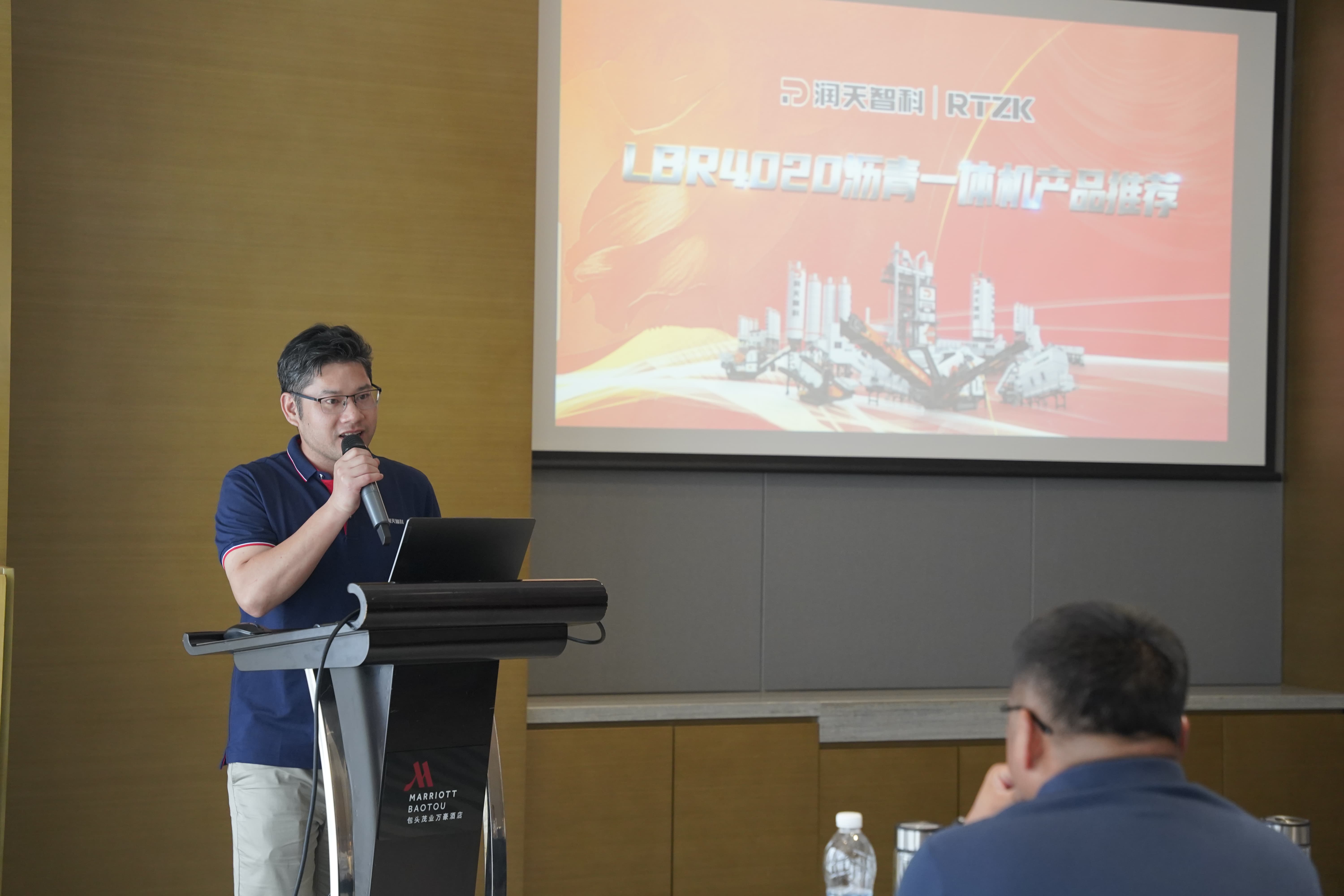 潤天智科董事長張裕率先致辭,擲地有聲地描繪企業(yè)藍圖:"深耕行業(yè)22載,潤天智科以百人專家團隊、10萬㎡產業(yè)基地和100+國家專利,鑄就混凝土攪拌、瀝青再生等四大領域技術壁壘!"他著重分享了LBR4020的產品品質:模塊化設計實現1個月極速安裝投產。