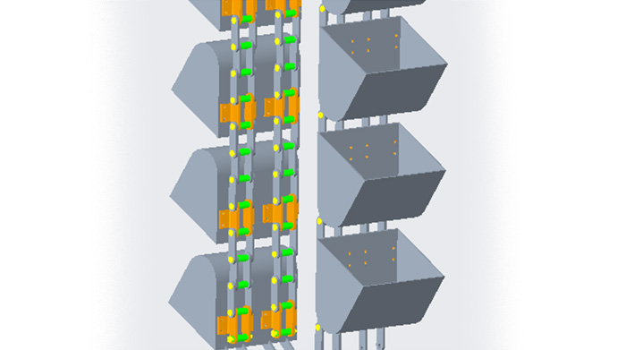 | 提升系統(tǒng) 板鏈?zhǔn)教嵘龣C(jī),板鏈不易拉伸,使用穩(wěn)定可靠。 減速電機(jī)直聯(lián)驅(qū)動(dòng),設(shè)有防逆轉(zhuǎn)裝置。 提升機(jī)溜道內(nèi)設(shè)有耐磨板結(jié)構(gòu),提高耐磨性能。 |