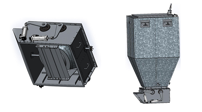 | 再生計(jì)量倉(cāng)、溜槽 計(jì)量倉(cāng)采用3點(diǎn)壓式稱量模塊,計(jì)量精確穩(wěn)定。倉(cāng)壁設(shè)有導(dǎo)熱油加熱裝置。倉(cāng)內(nèi)設(shè)有耐磨板,保證耐磨性能。 再生溜槽采用大截面,大傾角結(jié)構(gòu)。配有導(dǎo)熱油加熱保溫,溜槽內(nèi)設(shè)有耐磨板結(jié)構(gòu),保證耐磨性。 |